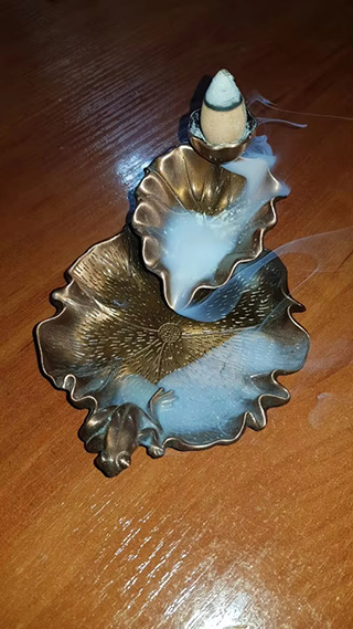 Dimni efekat koji nastaje prilikom korišćenja kamenčića tamjana stvara prelijep vizuelni spektakl koji opušta i fascinira. Dim se elegantno spušta niz dimnu fontanu, pružajući trenutke smirenja i uživanja u umjetničkom doživljaju. Ova kombinacija estetike i funkcionalnosti čini svaki prostor unikatno privlačnim i elegantnim